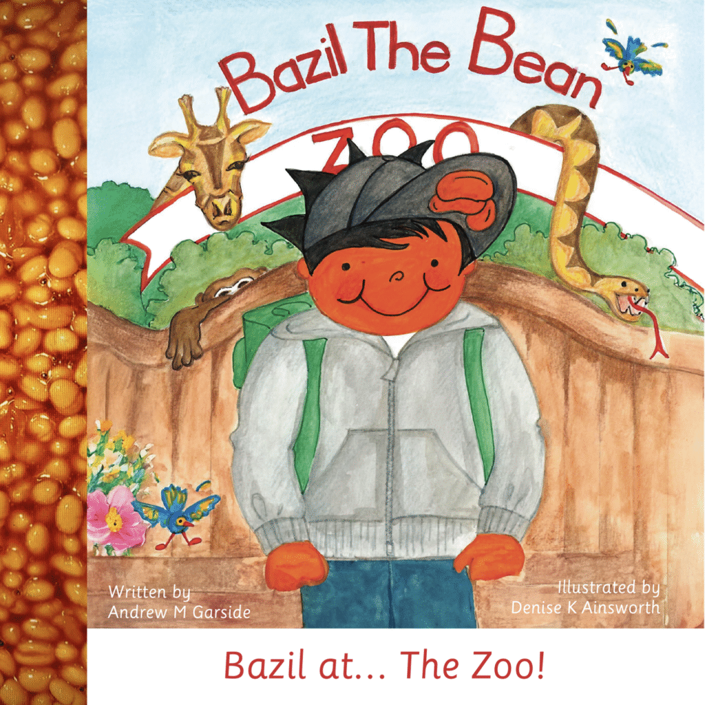 The Bazil the Bean set of books are written by Andrew M Garside and the wonderful bright vibrant illustrations on every page are by Denise K Ainsworth.