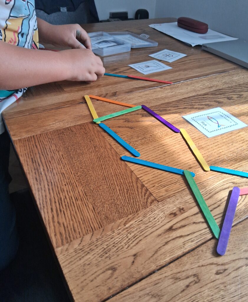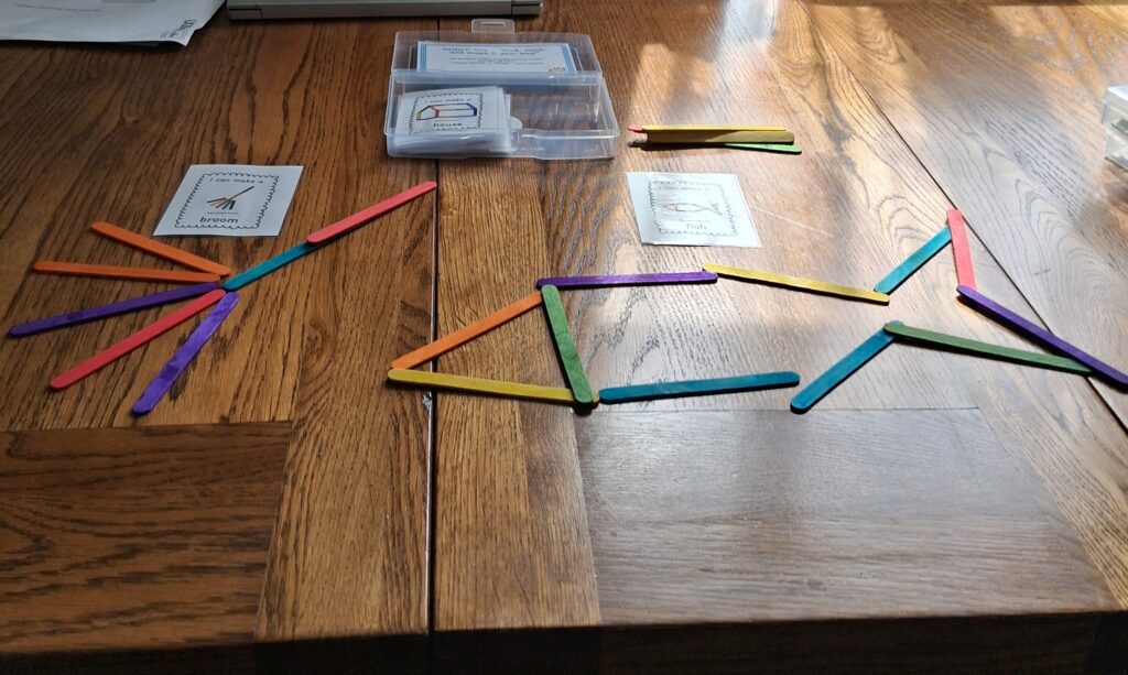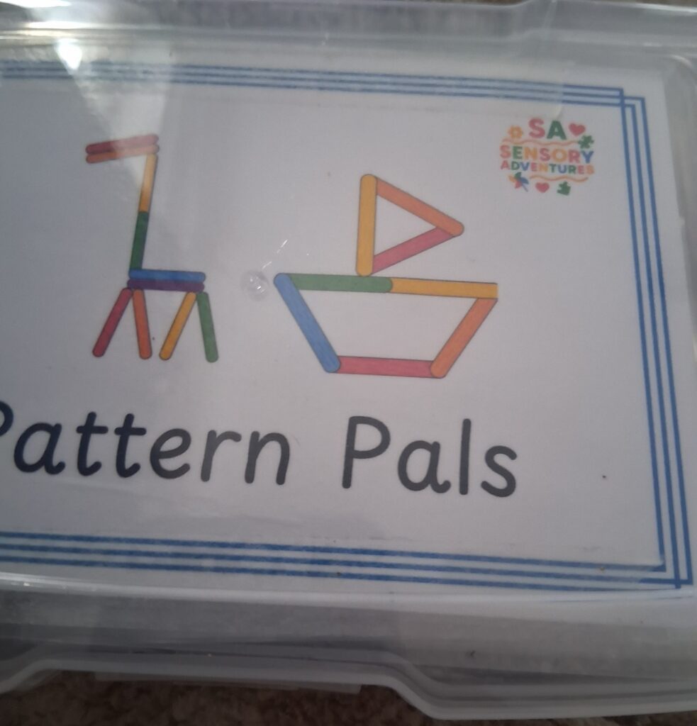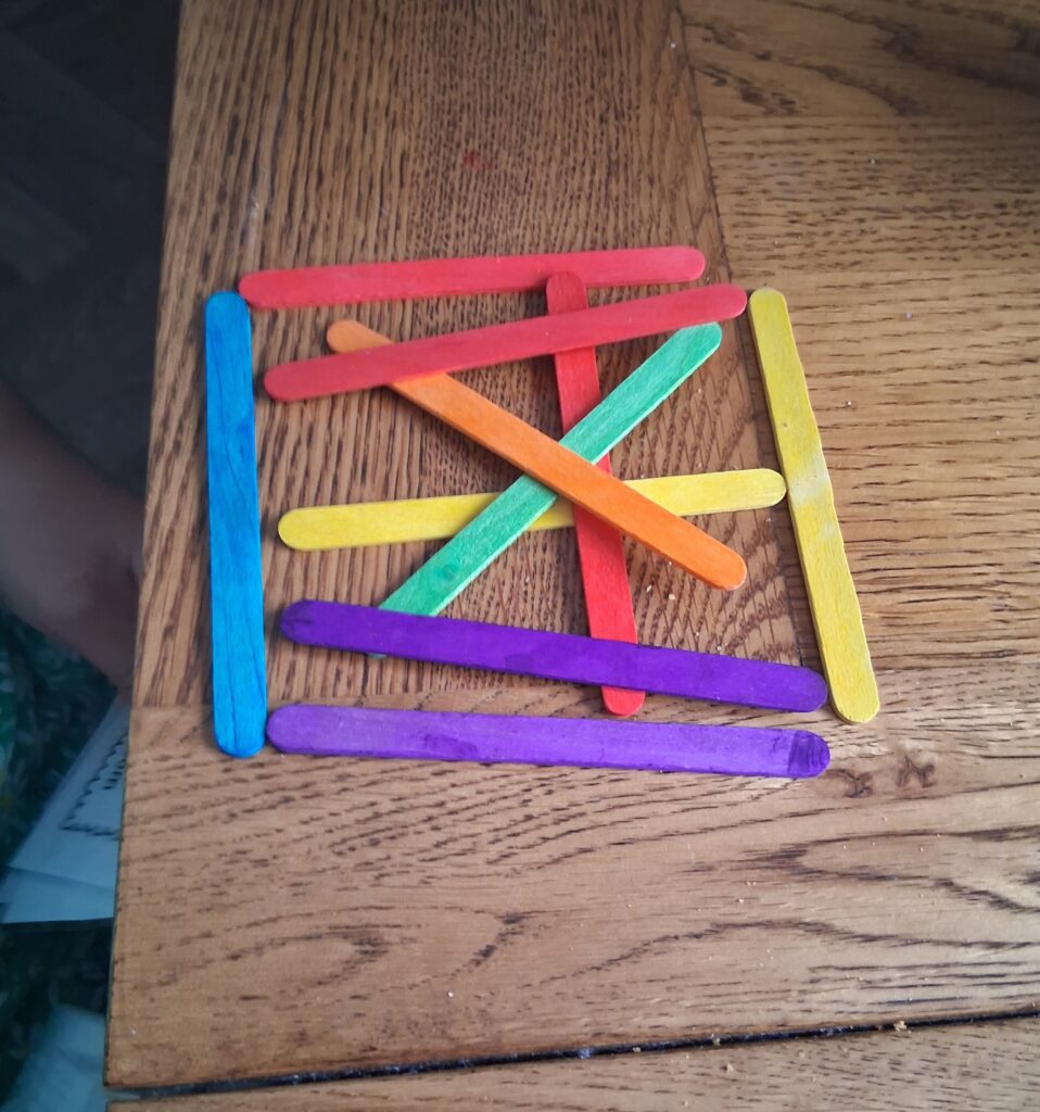 Inside this box are more laminated images and lots of different coloured sticks( the size of lolly pop sticks).