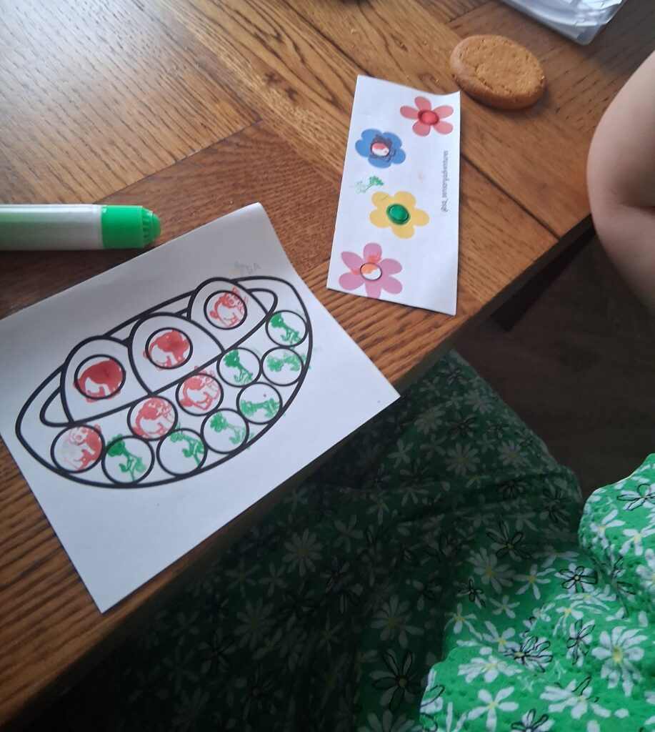 Consists of some images that children can use the red and green dot markers to complete their designs