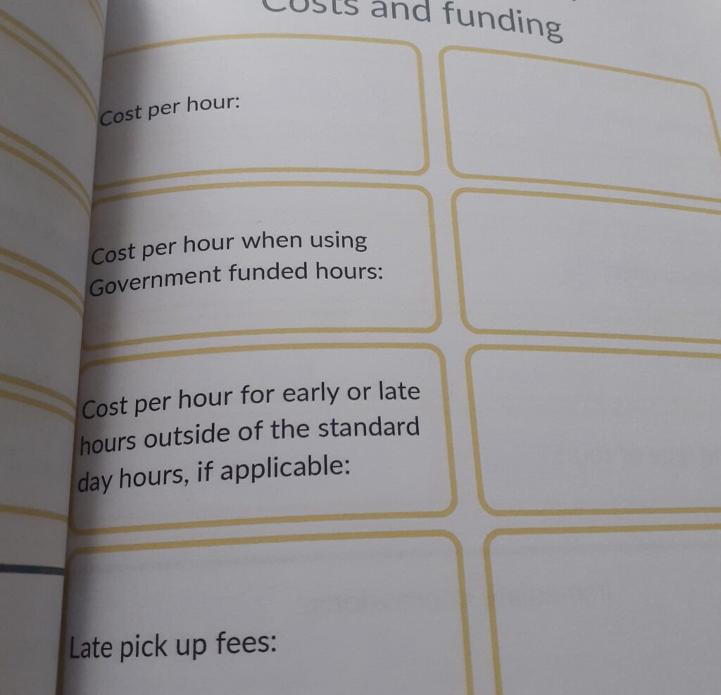 Then there are pages to fill out after visiting various settings ( parents should visit as many different and types of settings as possible, as each one will offer something different and it’s vital to find the correct one for you and your child’s needs).