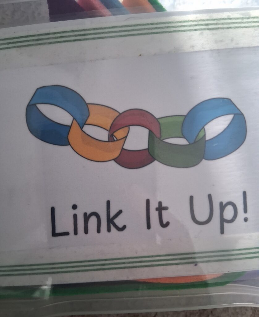 This pack consists of 4 different coloured strips of a textured material, which children can be asked what it feels like, with a button on one end and a button hole on the other; meaning that children can button the strips together in any order they want. There are also several brightly coloured plastic chain links that children can get creative with; making bracelets, necklaces or hang them from the material strips.