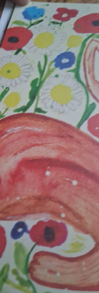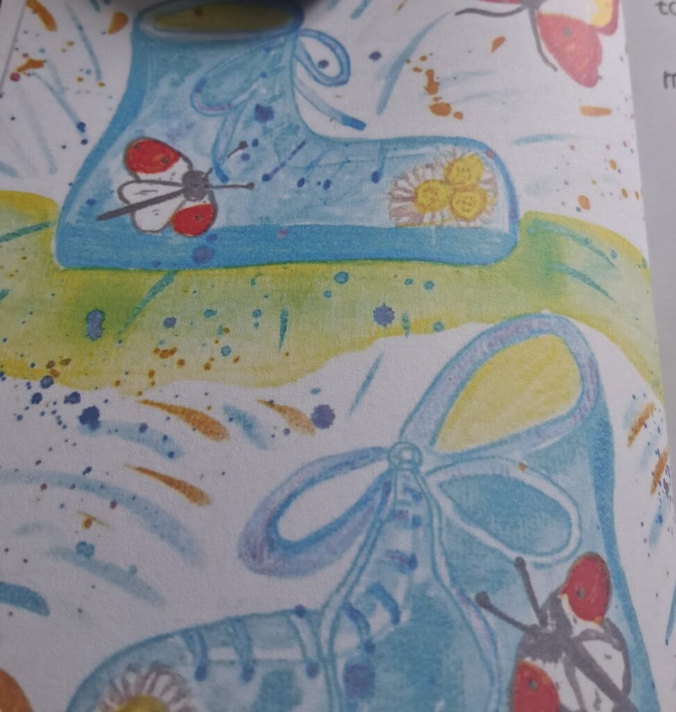 To Maya’s astonishment these animals start to twist their ears and the cross them over: After watching them for a while, she suddenly realises that they are actually showing her what to do with the shoe laces and for the first time she does it and proudly goes inside to show her family what she has done.