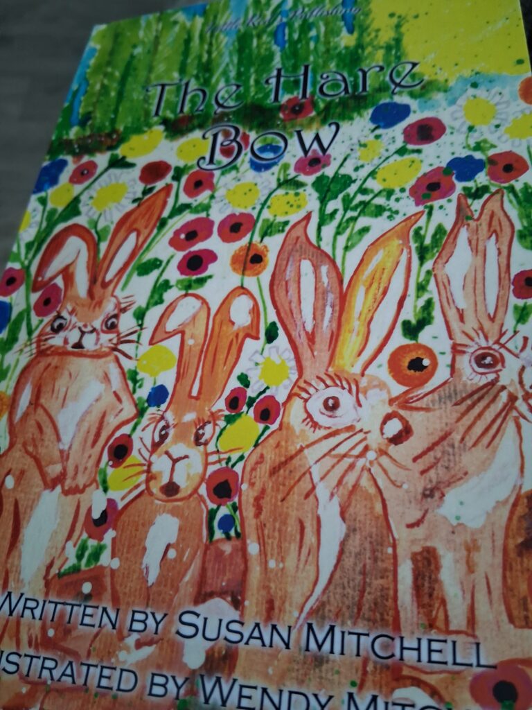 The hare bow is written by Susan M itchell and the colourful illustrations on every page are by Wendy Mitchell.